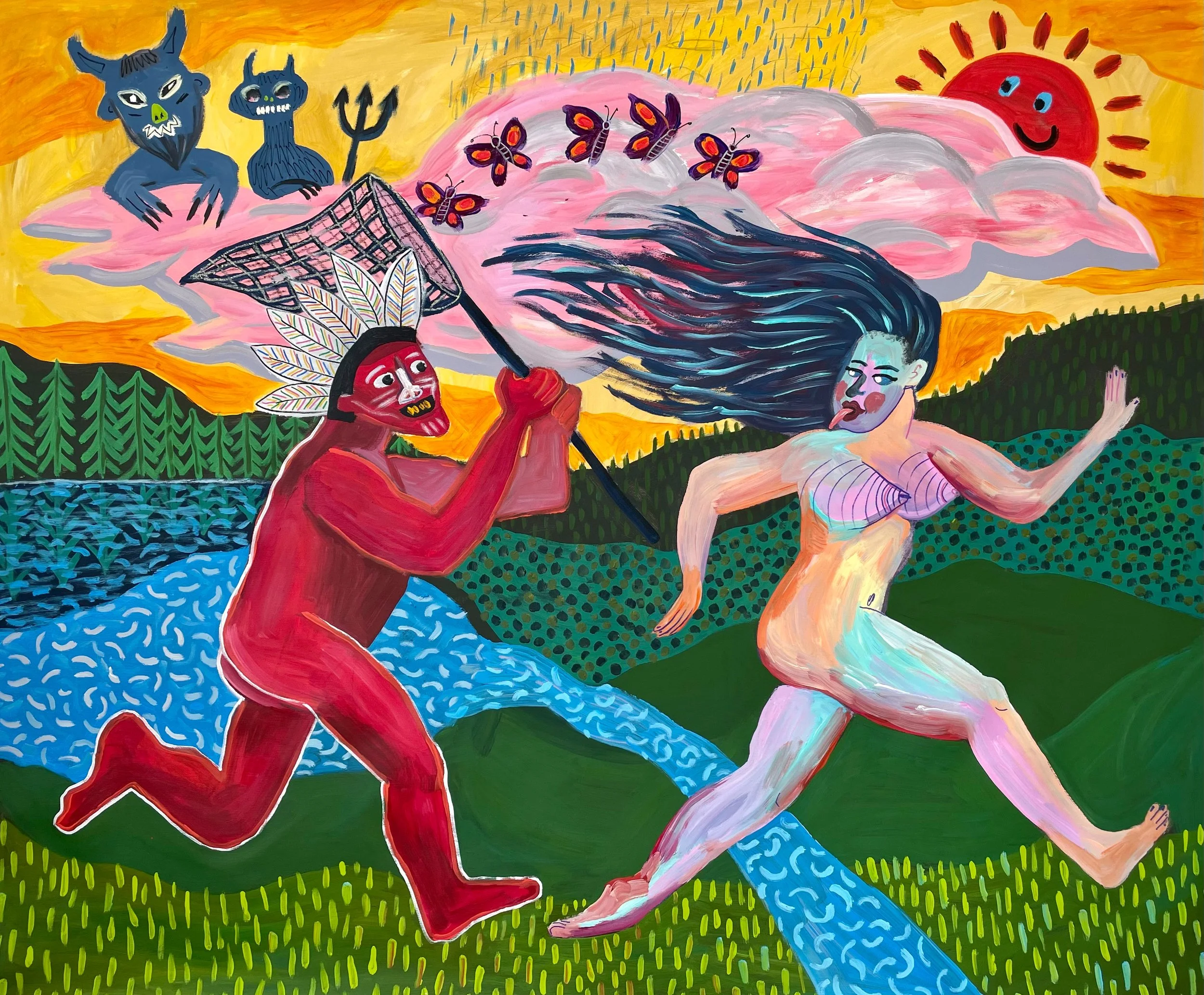 “Catch-up” 124x154cm canvas, acrylic, oil sticks, acrylic markers