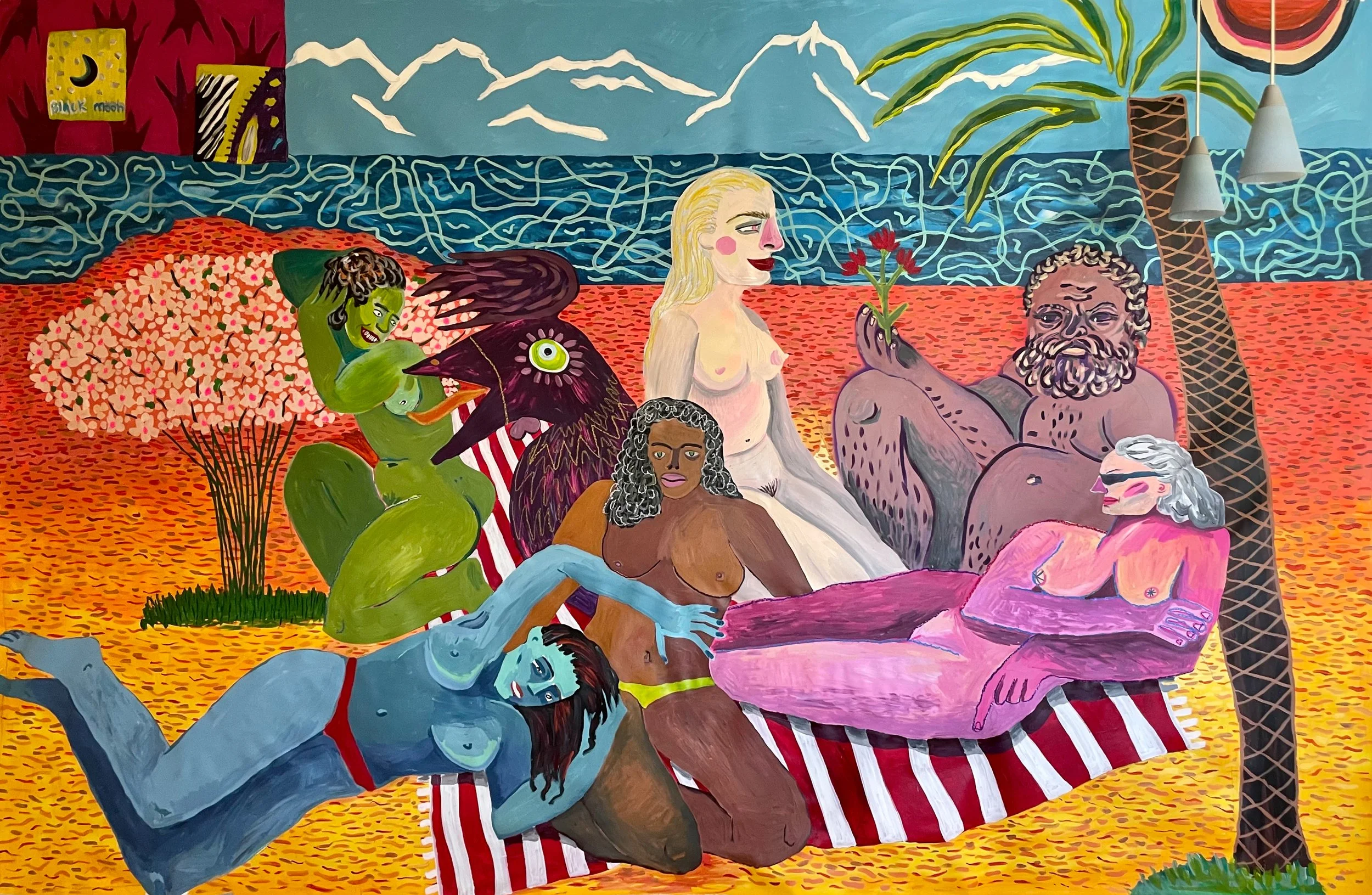 “Philosopher seduces the Nymphs” 210x300cm canvas, acrylic, oil sticks