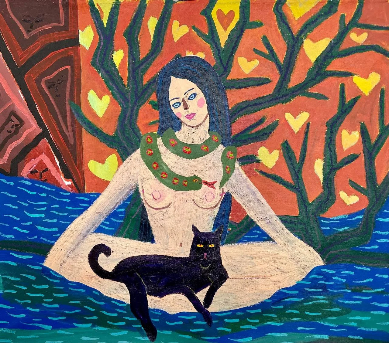 “Meditation with Cat and Snake” 50x60cm | canvas, acrylic